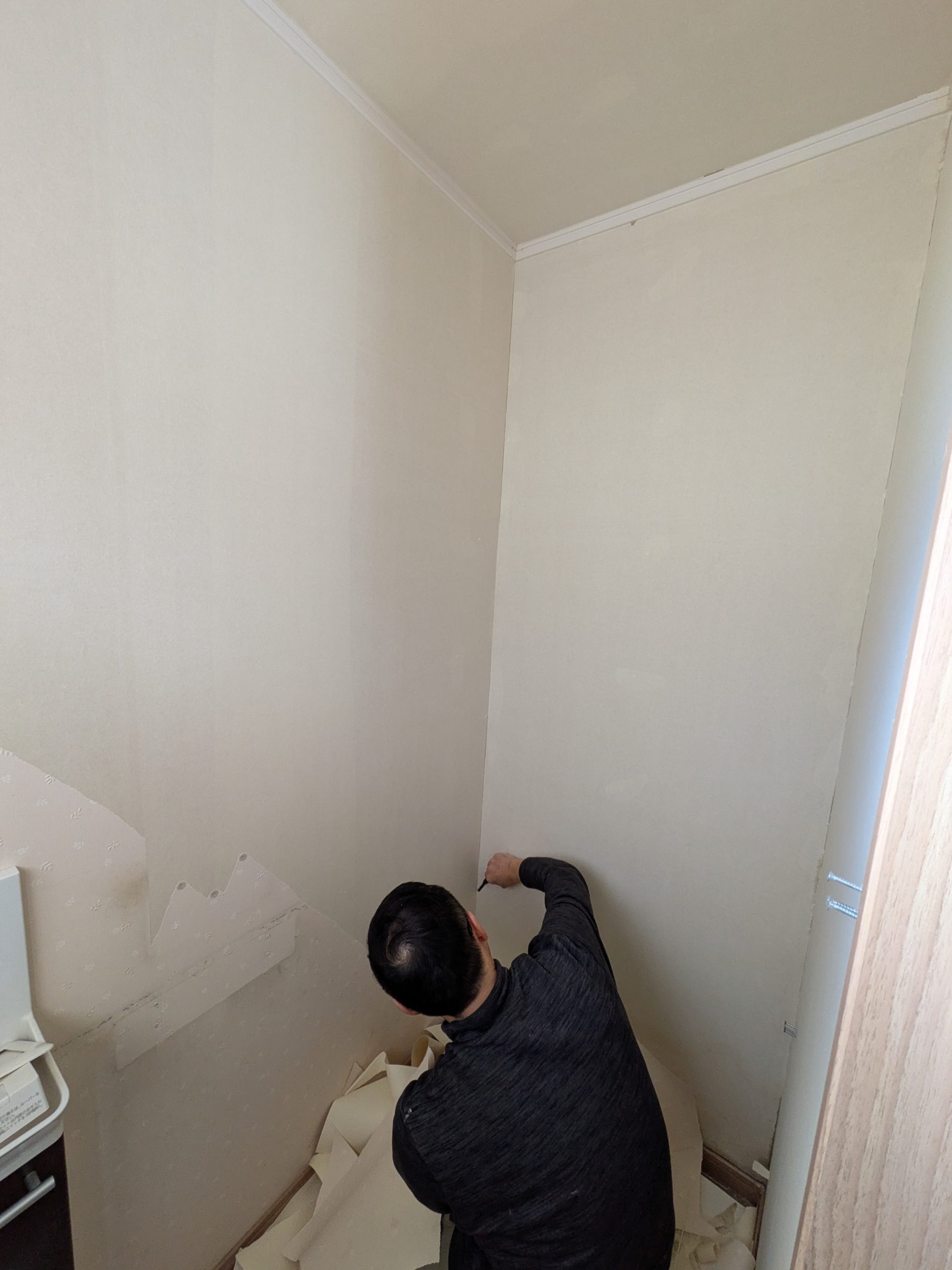 気分一新、以前とは全く違うお部屋になりました。ビニールクロスは、職人技でキレイに剥がして貼替ました。