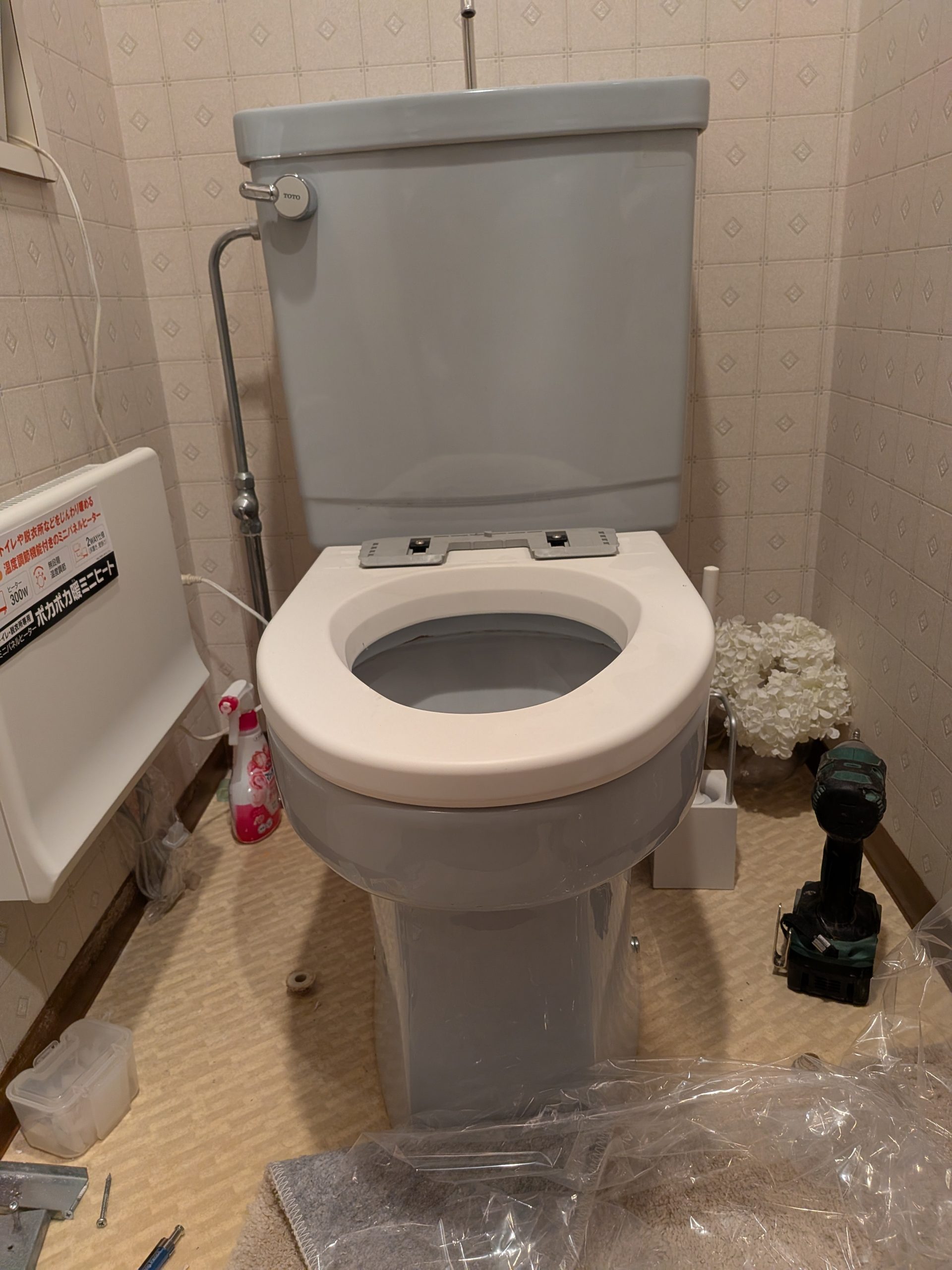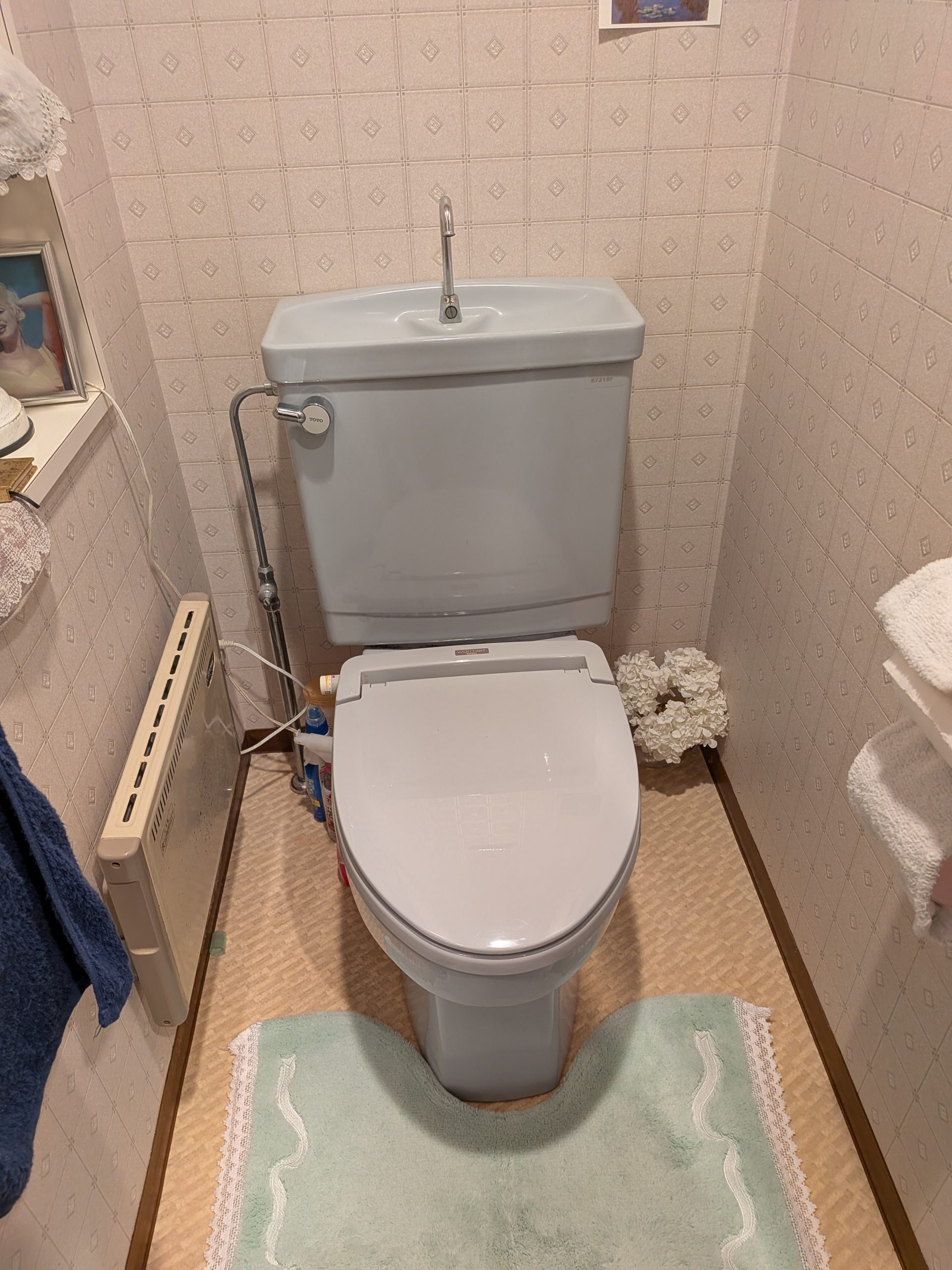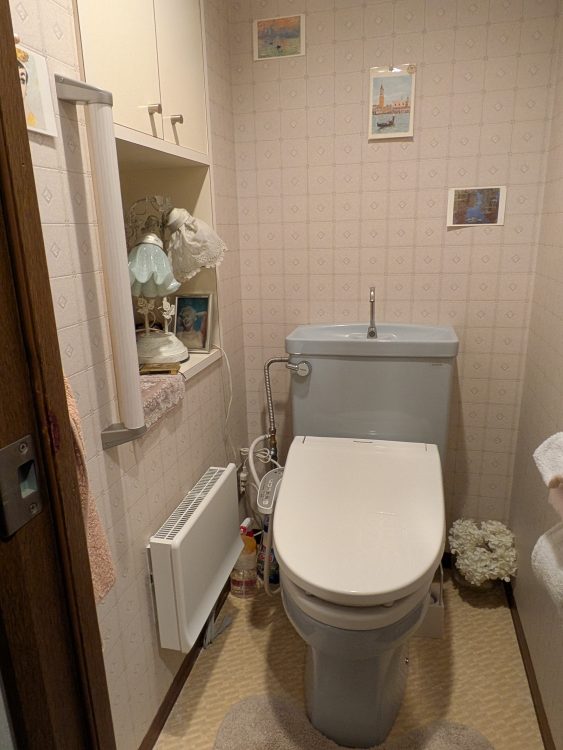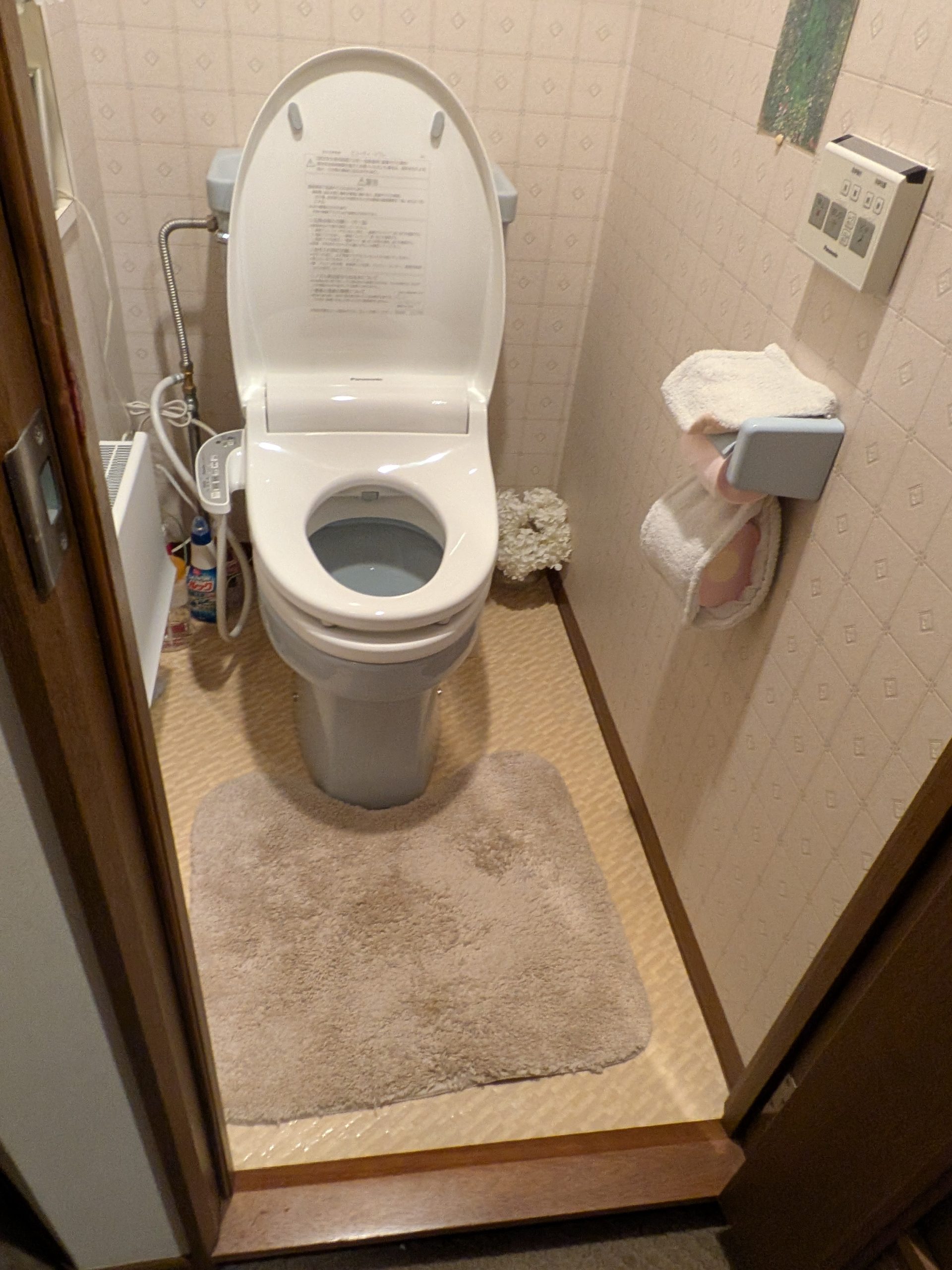 既存便器はそのままに、暖房便座をパナソニックの温水洗浄便座へ交換させていただきました。